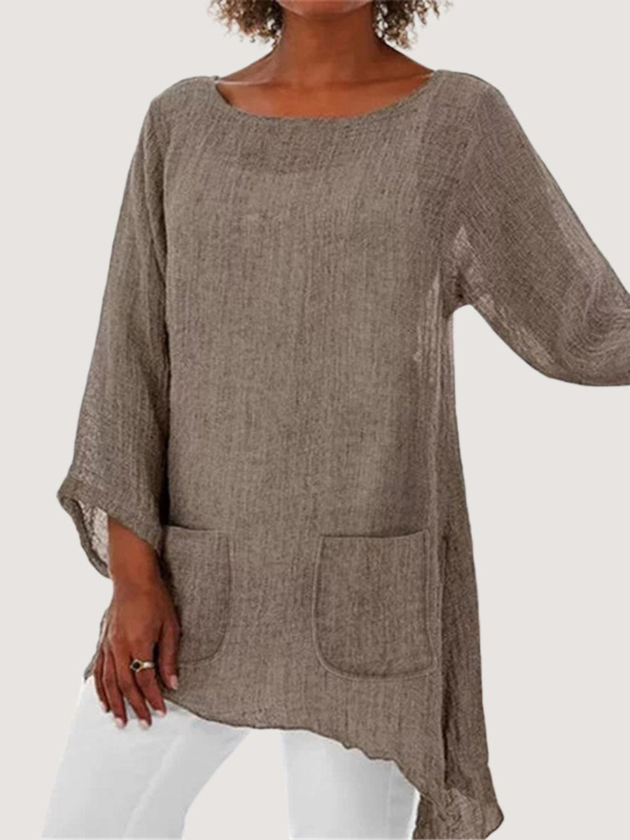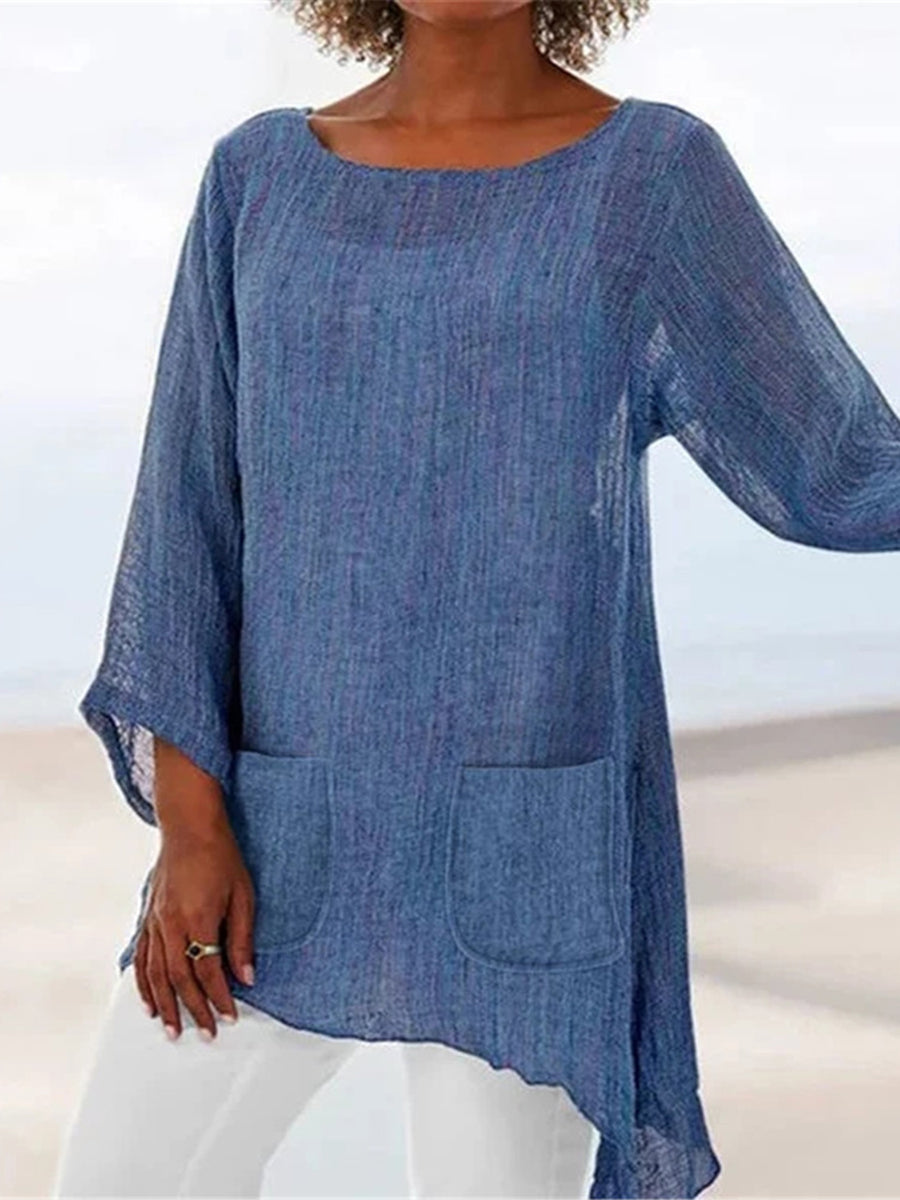 Product: Cotton And Linen Irregular Hem Women'S Top